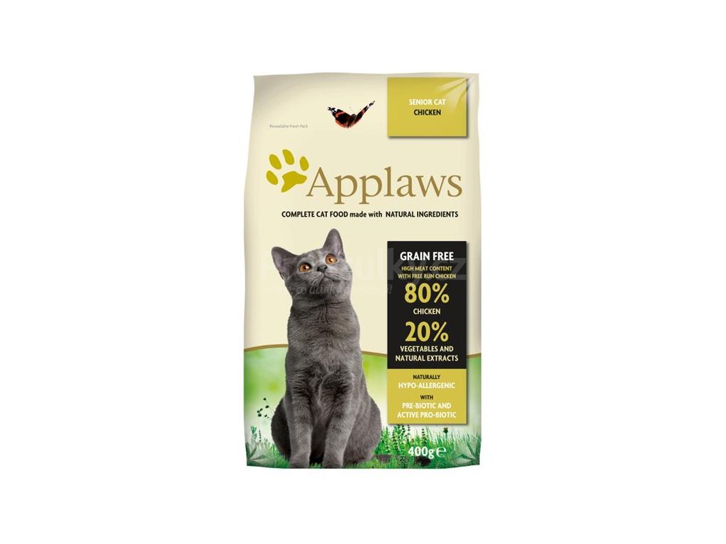 Applaws Cat Senior Chicken je kompletní krmivo pro kočky starší 7 let. Neobsahuje obiloviny, je přirozeně hypoalergenní. Přírodně konzervováno s vitamínem E a rozmarýnovým olejem. Applaws obsahuje přírodní výtažky z brusinek, známé svým přínosem pro zdraví močových cest a prebiotika pomáhající udržovat zdravý trávicí systém. Přírodní omega 3 a omega 6 mastné kyseliny vyživují srst a tím pomáhají vytvářet hedvábný lesk a zároveň zachovat zdravou kůži. Antioxidační formule obsahuje směs přirozeně se vyskytujících antioxidantů selenu a přírodních tokoferolů. Výhody přírodních antioxidantů jsou stále více uznávány, jako důležité pro zdraví a vitalitu kočky.