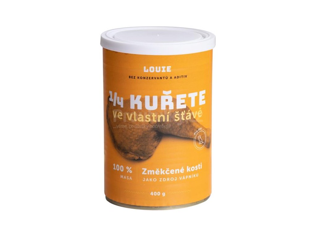 Šťavnatá masová konzerva obsahuje 1 kuřete ve vlastní šťávě a změkčené kosti, které jsou přírodních zdrojem vápníku. Přírodní krmivo, na kterém si pochutnají starší psi i štěňata. Vhodné pro alergické psy s citlivým zažíváním, protože obsahuje jen snadno stravitelné kuřecí maso.