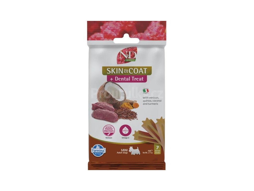 N&D QUINOA Dog Dental Snack Skin & Coat Venison Mini 60 g