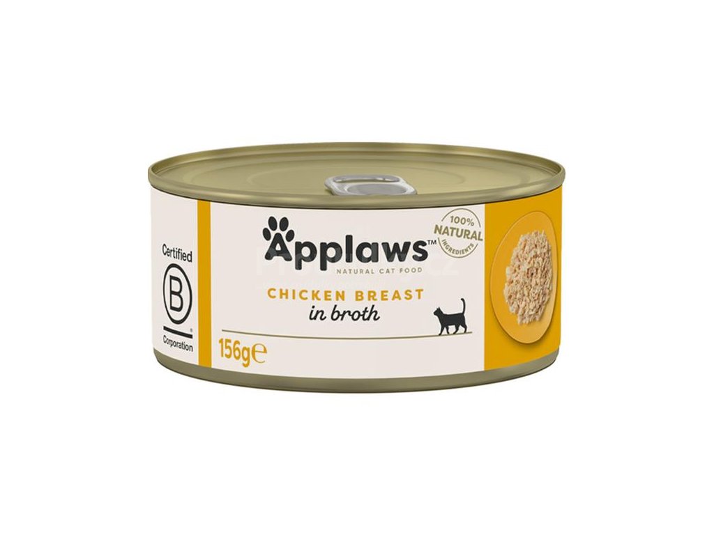 Konzerva Applaws je lehce stravitelné, nutričně vysoce hodnotné, přirozeně bezlepkové, hypoalergenní a hlavně velmi chutné krmení! 100% přírodní krmivo bez umělých konzervačních látek, barviv nebo dochucovadel. Kvalitu poznáte na první pohled po otevření konzervy: přirozená konzistence trhaného masa z kuřecích prsou v lahodném kuřecím vývaru vás přesvědčí a vaši kočku nadchne. Kuřecí maso pochází z chovů, v nichž jsou kuřata chována ve volných výbězích, krmena přirozeně bez použití hormonů a antibiotik, jsou zdravá a v potravinářské kvalitě.